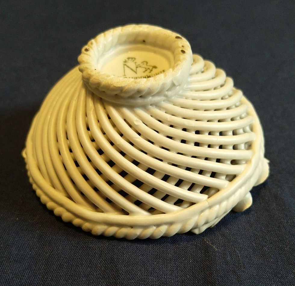 Cestino in ceramica intrecciata Capodimonte anni '50